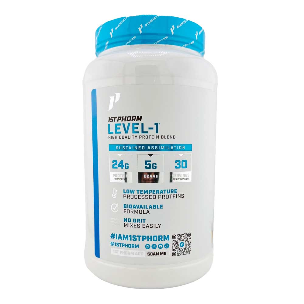 Level-1 is comprised of the Level-1 Matrix which is a bioavailable, sustained assimilation protein formula* consisting of Low Temperature Processed Cross-Flow Micro Filtrated Whey Protein Isolate, Low Temperature Processed Micro-Filtrated Whey Protein Concentrate and Low Temperature Processed Milk Protein Concentrate. The Level-1 Matrix is specifically formulated to deliver premium proteins in a sustained release which mimics the protein assimilation rates of whole food.* Level-1 uses only proteins that have been Low Temperature Processed to take extra precaution to not denature or damage delicate protein fractions. This helps with bioavailability and the preservation of the unique functional properties of the native proteins, which may help support your fitness goals.