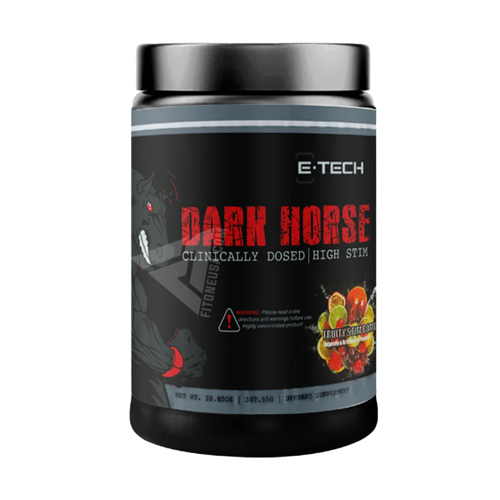 Unleash your inner beast with E-TECH DARK HORSE HIGH STIM PREWORKOUT. Crush your workouts with powerful pumps, muscle gain, and energy-boosting formula. This high-stim preworkout is your ultimate training partner for pushing your limits and achieving peak performance. Say goodbye to fatigue and hello to unstoppable energy!