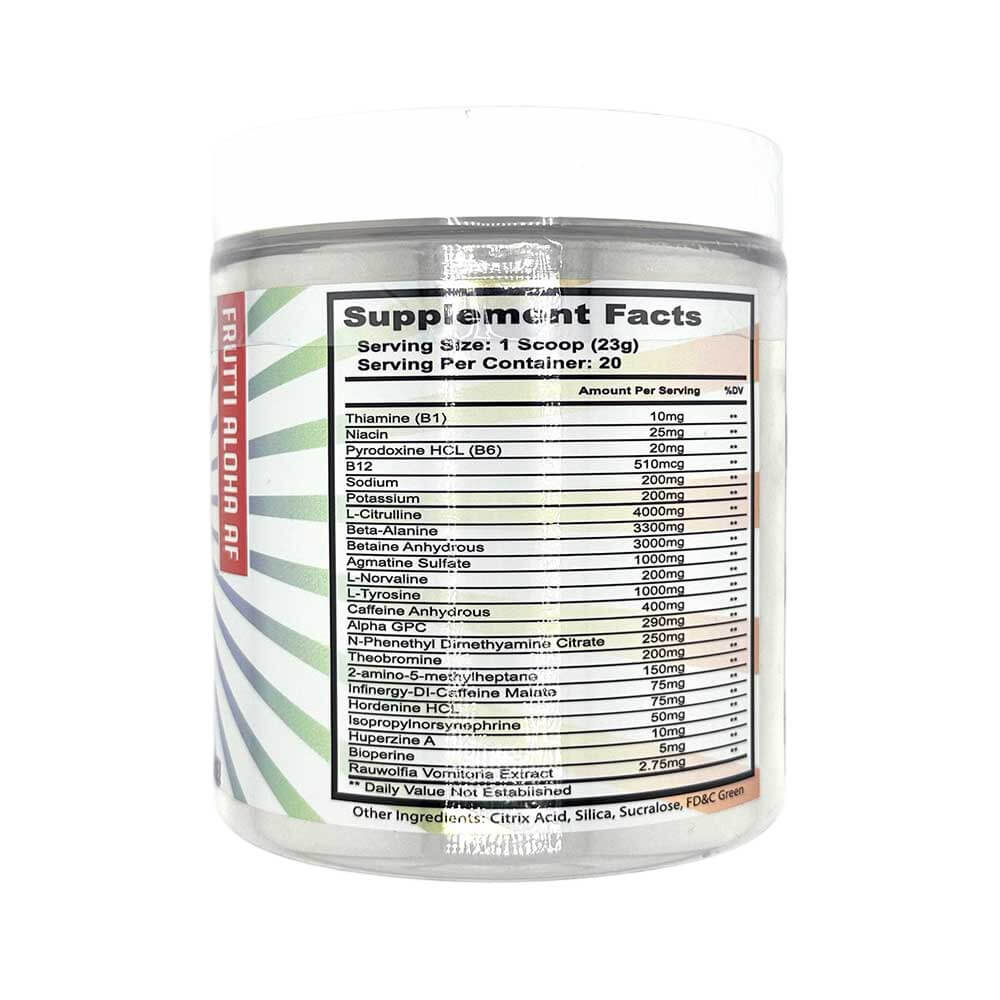 Experience the island-inspired rush of Frutti Aloha AF, a bold and juicy flavor fusion that brings tropical vibes to every scoop. But don’t let the delicious taste fool you—this formula hits hard, giving you clean, sustained energy and pump-boosting performance that leaves you feeling invincible.