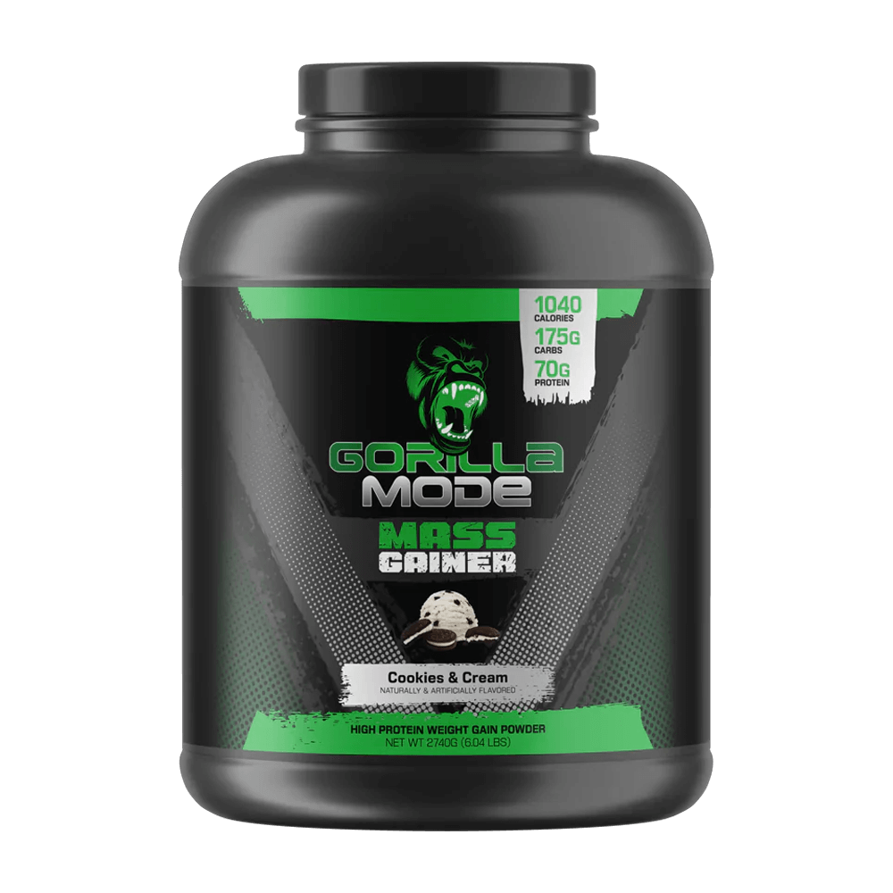 Gorilla Mode Mass Gainer is our high protein weight gain formula designed to be your bulking weapon for packing on lean muscle, boosting exercise performance, and enhancing recovery. We understand how hard it can be to slam thousands of calories every day when you’re trying to pack on as much size as possible during a bulk. When you’re not feeling as hungry, our Mass Gainer provides 74 grams of protein and 174 grams of carbs in 1040 drinkable calories in pure powder, not inflated with added milk in the supplement facts panel. Enhanced With Velositol Velositol combines chromium and amylopectin in a trademarked blend that, when paired with 74g of high-quality whey protein, may enhance muscle protein synthesis more effectively than taking whey protein alone. The purported mechanism of action is via chromium’s ability to enhance insulin signaling and bind to its receptors when glucose and insulin levels increase. This reduces protein breakdown, increases amino acid uptake into muscle cells, and increases mTOR complex 1 signaling, stimulating endothelial-dependent vasodilation and, ultimately, muscle protein synthesis. Additionally, Velositol may increase exercise-responsive myokines involved in muscle growth. Why Gorilla Mode Mass Gainer? This formula is tailored to deliver quality nutrients to your muscles quickly and assist in packing on the right kind of weight. Our formula contains 1040 calories, 174g of easily digestible carbohydrates, 74g of fast-digesting high-quality whey protein (macros may vary slightly between flavors). Many Mass Gainers contain a 3:1, 4:1, or sometimes even 5:1 carb-to-protein ratio, whereas we provide 2.5:1 to help you meet your daily protein requirements, which can be challenging for some. While occupying 1000+ calories with powder, 74 grams of protein backfilling your daily intake awards the leeway for your remaining daily whole food meals to contain more carbs, which can be easier to get down. Another challenge with many weight gainers is Casein, which digests much slower than whey protein and will coagulate in your stomach, creating solid curds that have the potential to contribute to GI distress. Due to these properties, it’s also much thicker than whey, giving it a wet cement-like consistency that isn’t very pleasant or easy to drink. Our Mass Gainer’s main protein source comes from Whey, which digests quickly, mixes effortlessly and has a smooth texture that allows us to make it taste creamy, flavorful and delicious. If your shake is more challenging to get down than a meal, you might as well eat whole foods. Gorilla Mode Mass Gainer provides convenient, drinkable calories that digest well and taste like a treat when eating a full whole-food meal isn’t as doable. If you’re bulking, training for strength, or have a busy lifestyle, this product is for you. If you’re a hard gainer or in a tight pinch on calories for the day, you can utilize the 4-scoop max dosage, which has 1040 calories, 174 grams of carbs and 74 grams of protein.