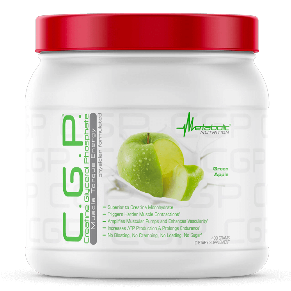 While there are many forms of creatine, only C.G.P. has the unique double bonding of glycerol and phosphate to improve absorption, increase energy through enhanced ATP production, and provide better blood flow which increases vascularity and sustains harder muscle pumps. The superior absorption kinetics of C.G.P. means that there is no need for a loading phase and users should expect to avoid bloating or cramping typically found in other creatines.