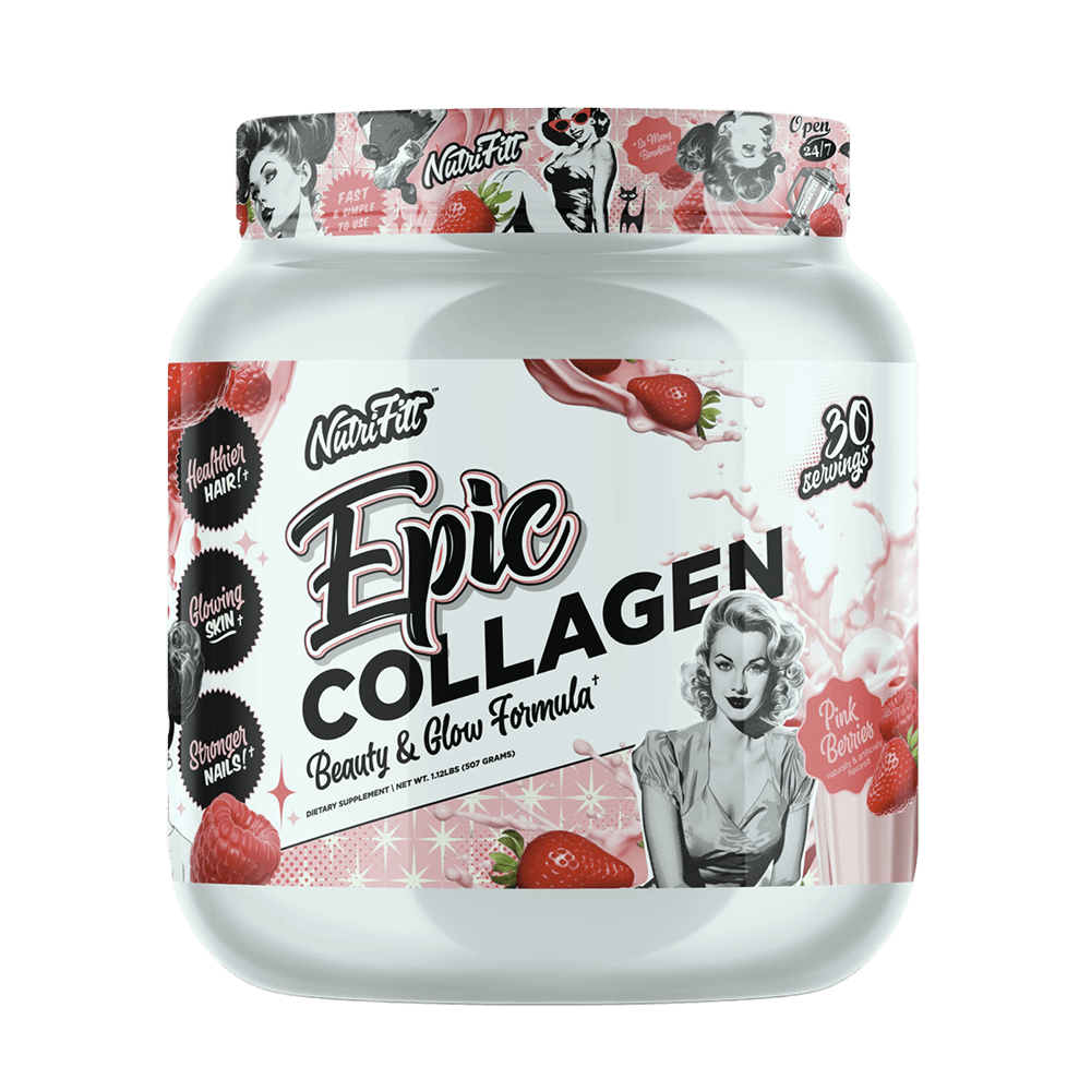 NUTRI FITT Epic Collagen Beauty and Glow Formula (Pink Berries) is your daily boost for beauty from the inside out. This powerful collagen blend supports radiant skin, improves joint function, and encourages stronger hair and nail growth. Easy to mix into your favorite drinks, it’s the effortless way to glow, move, and thrive with confidence.