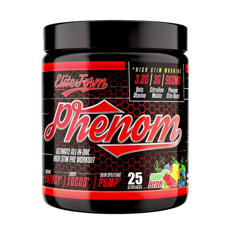 Say goodbye to lackluster workouts and hello to peak performance with ELITE FORM PHENOM. The unique flavors will tantalize your taste buds, making it a delightful pre-gym ritual. Whether you’re a seasoned athlete or just starting your fitness journey, this high stim pre-workout is perfect for anyone looking to push their limits.